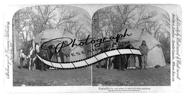 Photo of Stereograph,Family,Winter Home,Indian Territory,c1900,Reed Man Hut