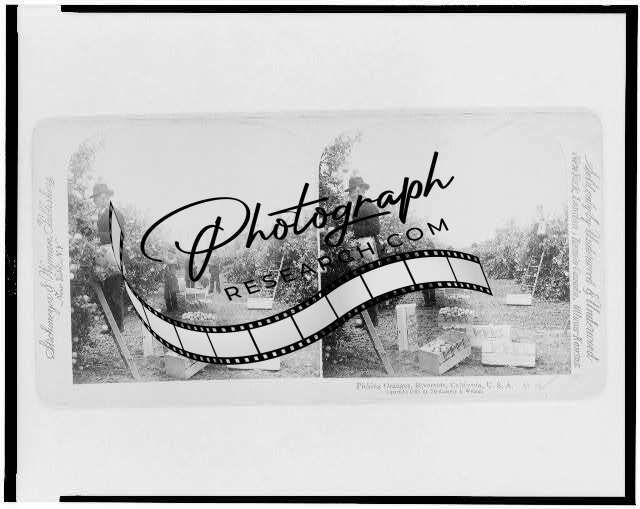 Photo of Stereograph,Picking Oranges,Riverside,California,CA,Harvesting,c1898