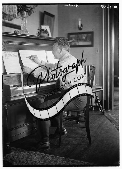 Harrison,chairs,seats,piano,sheet music,writing,composing,men,Bain News Service