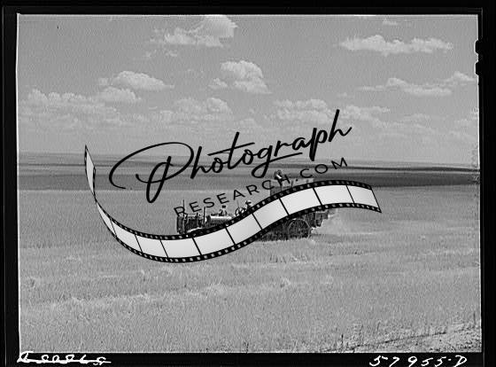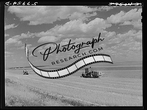 Title: Harvesting wheat with combines on Schnitzler Corporation ranch, Froid, Montana. There are about 2800 acres on this part of the ranch and they are getting over forty bushels to the acre. It is one of the largest wheat ranches in the West