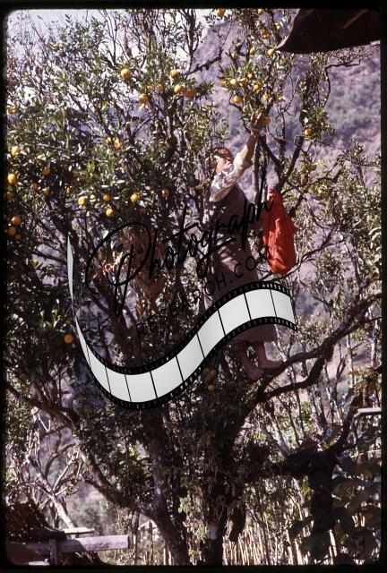 Woman standing on Tree Branch,Picks Oranges,Sikkim,India,Working,January