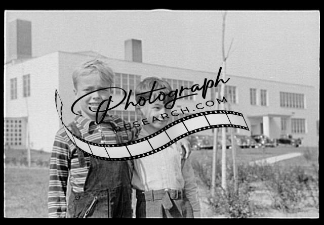 Schoolchildren,students,boys,buildings,Greenhills,Ohio,OH,John Vachon,1938