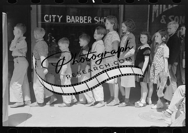 Title: Group of schoolchildren waiting to get in the movies, San Augustine, Texas