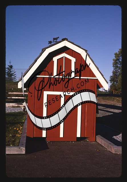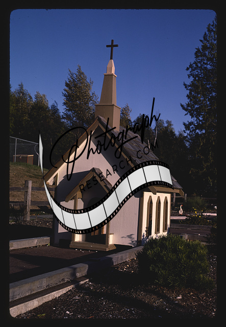 Title: Schoolhouse three-quarter view, mini golf at Koa Campground, Lynden, Washington