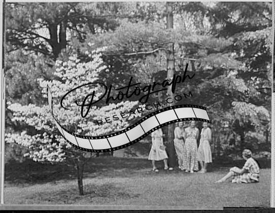 Schools. Group of women examining patch of tulips,Samuel Gottscho,Education