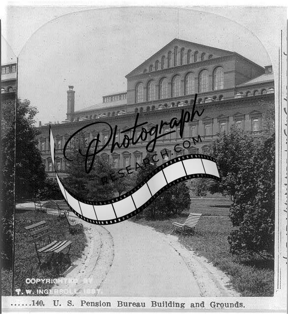 United States Pension Building & Grounds,August c1898,Exterior View,Bench,Trees