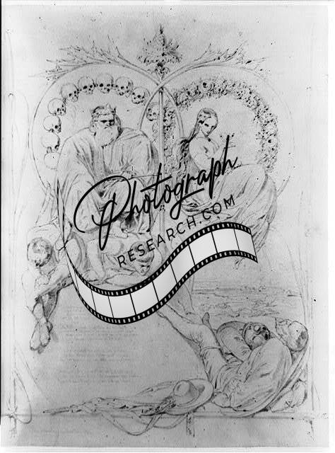 Allegorical image,king surrounded,skulls,woman,garland,books,C Schmolze,1864