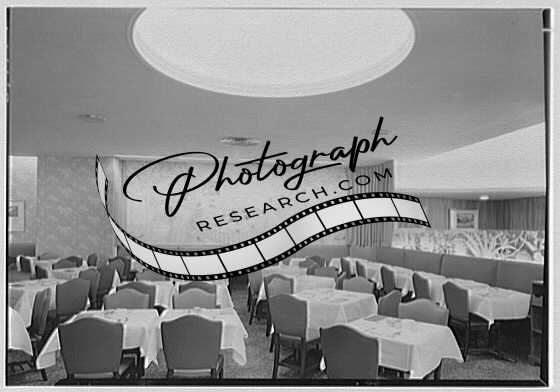 Title: Schrafft's, Broadway and 43rd St., New York City. Second floor dining room, to stairs