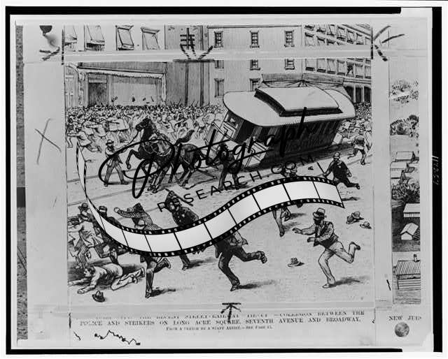 Police Battle Mob,Transit Strikers,Derailed Horse-Drawn Trolley,Longacre Square