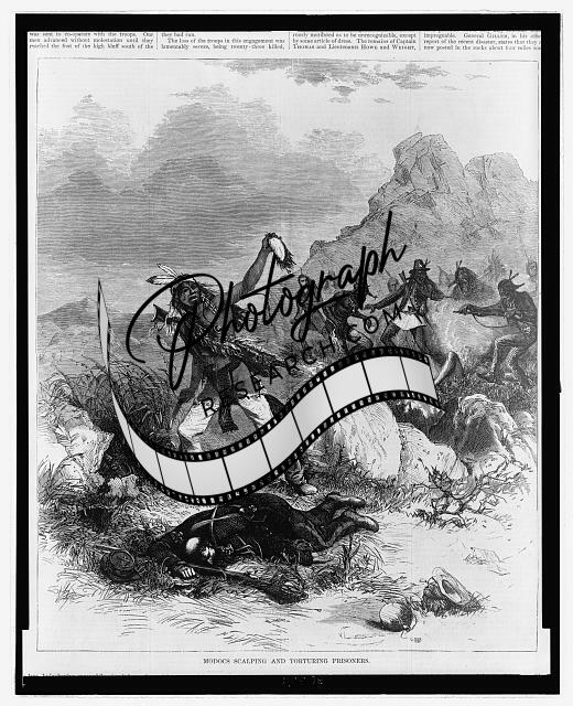 Modocs scalping,torturing prisoners,Indian,dead soldier