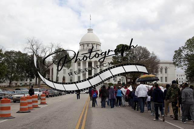 Title: March from Selma to Montgomery recreating the important Civil Rights event that happened in 1965, ended with this walk up to the Alabama Capitol in Montgomery and passed by the Dexter Avenue Memorial King Baptist Church where Martin Luther King preached