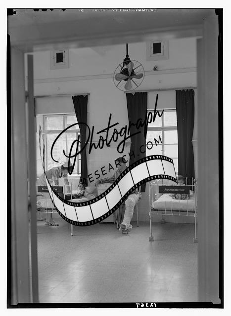 Title: Scots Mission Hospital, Tiberias. Interior of dormitory, downstairs (ground floor)