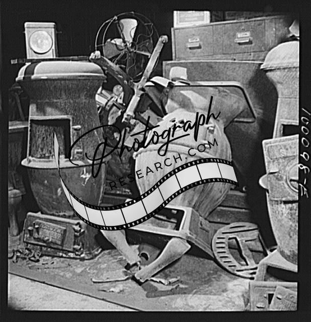 Title: Washington, D.C. Scrap salvage campaign, Victory Program. Bicycle, tires and shovel in yard of retail junk dealer