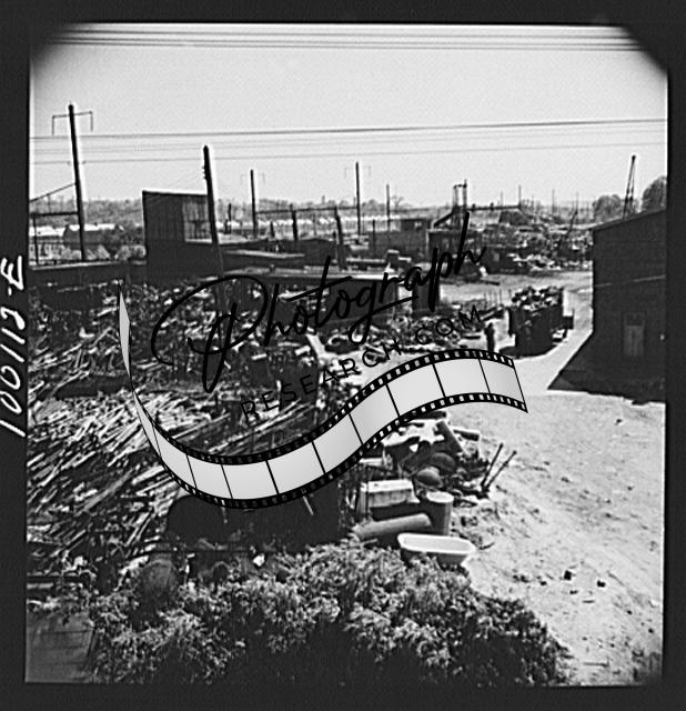 Title: Washington, D.C. Scrap salvage campaign, Victory Program. Wholesale junkyard beside siding in rear background. Truck in right foreground is being weighed on platform scale before unloading
