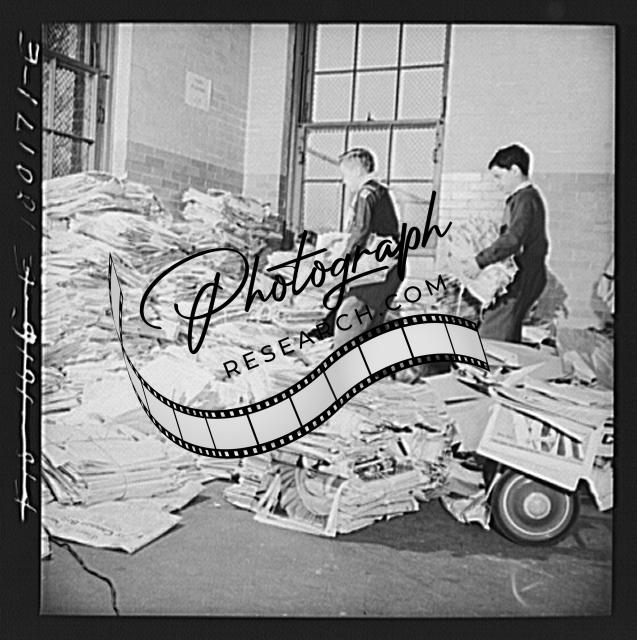 Title: Washington, D.C. Scrap salvage campaign, Victory Program. Washington schoolchild brings a load of scrap paper to school once a week. Here it is collected by paper company truck