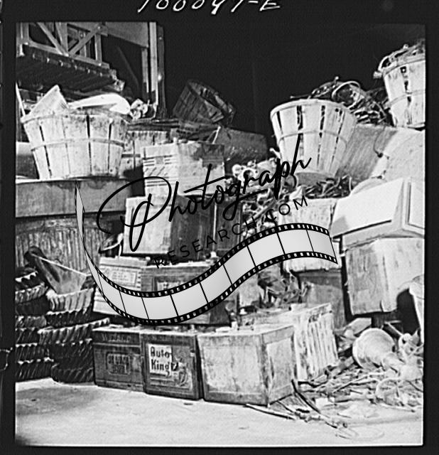 Title: Washington, D.C. Scrap salvage campaign, Victory Program. Metal eagle from ship is among objects stored in warehouse of wholesale junk dealer