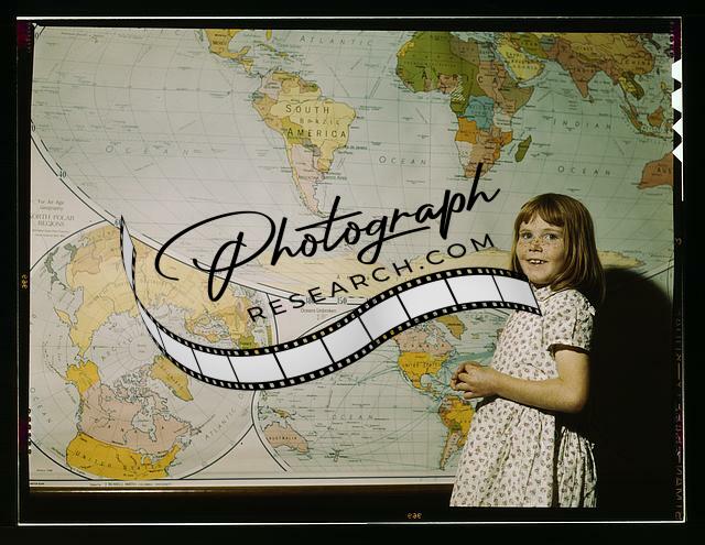 Rural school girl,children,maps,San Augustine County,TX,Texas,John Vachon,1943
