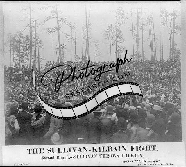 John Lawrence Sullivan,1858-1918,in clinch during Jake Kilrain fight,1889