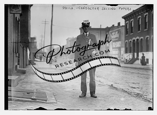 Conductor from transit system selling papers on street,Philadelphia,PA,1910