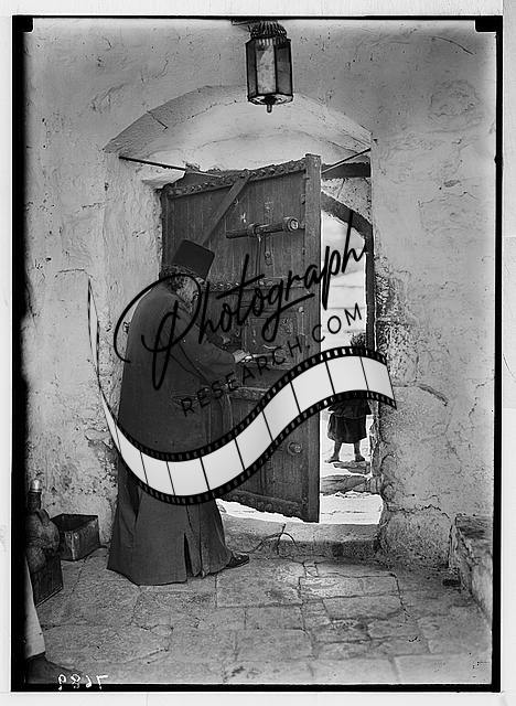 Doorway with monk,Mar Saba,West Bank,Middle East,American Colony Photo,c1935