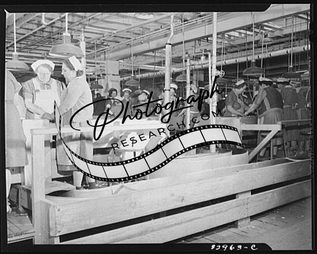 Title: Bridgeton, New Jersey. Seabrook Farm. Loading beans into the hopper of the trimmer before packing