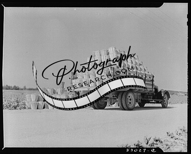 Title: Bridgeton, New Jersey. Seabrook Farm. Loading beans onto the truck which will carry them directly to the Seabrook quick freezing plant