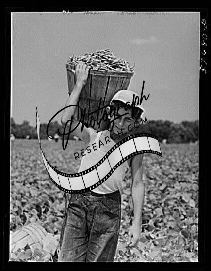 Title: Day laborers to pick stringbeans are bought by trucks from nearby towns. Some even come in their own cars from Philadelphia to work at Seabrook Farms. Bridgeton, New Jersey