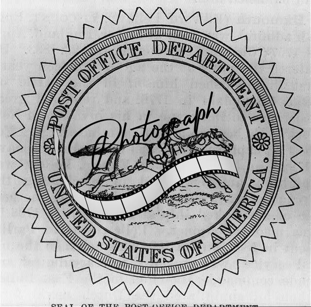 Seal of Post Office Department,man on horseback,running