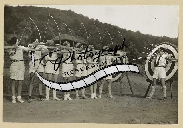 Young women aiming arrows,target,Camp Greystone,Tuxedo,North Carolina,NC,1920