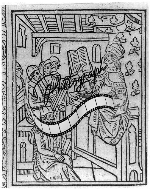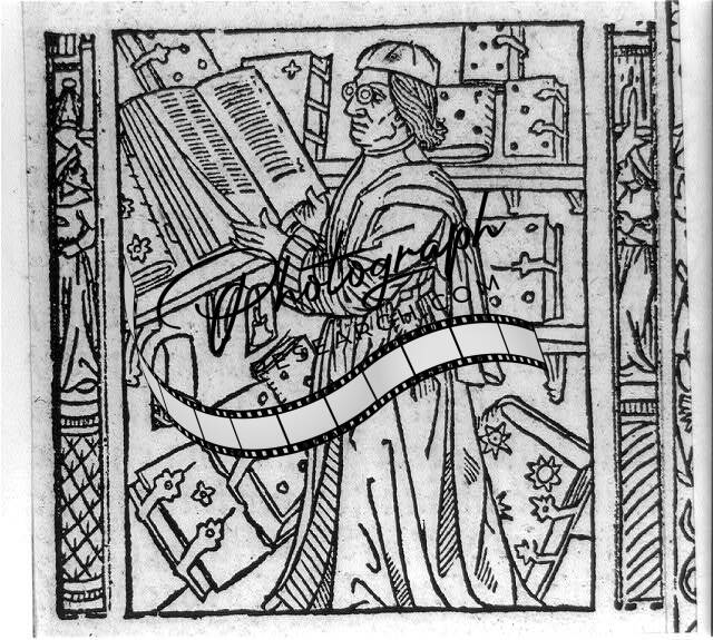 Caption card tracings: Scholars; Libraries; Occupations Scribes; Incunabula; Rare Book Division; Shelf.
