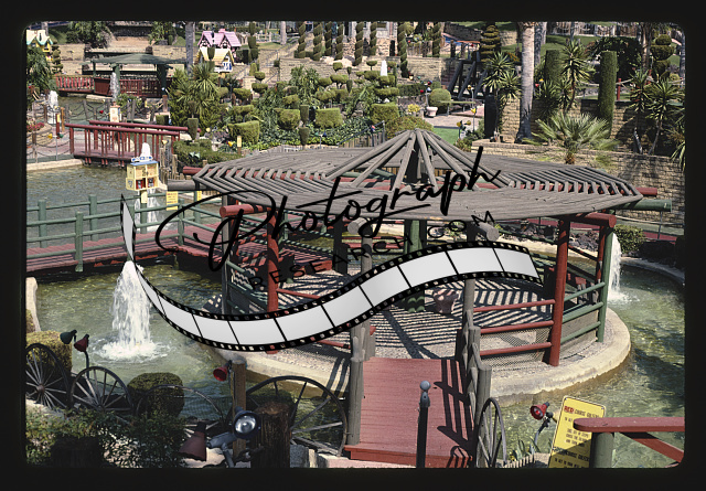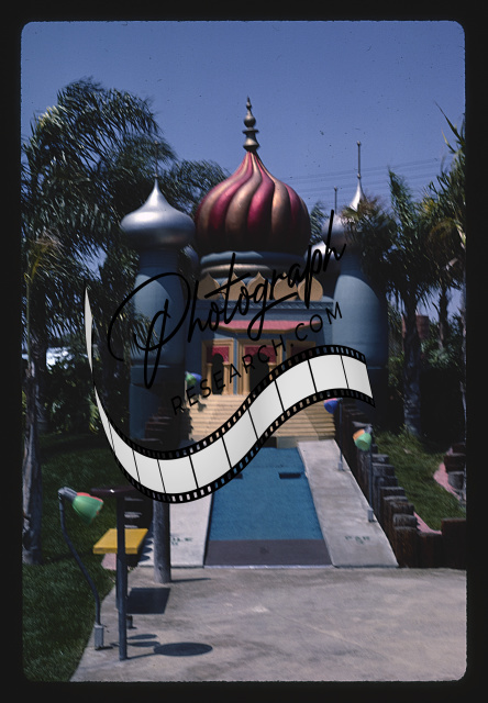 Seating and landscape, vertical, Castle Amusement Park mini golf, Polk Street, Riverside, California