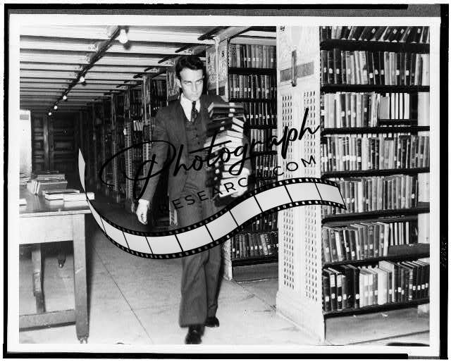 Library,Congress,Jefferson Building,interior,man carrying books,stack area,1920