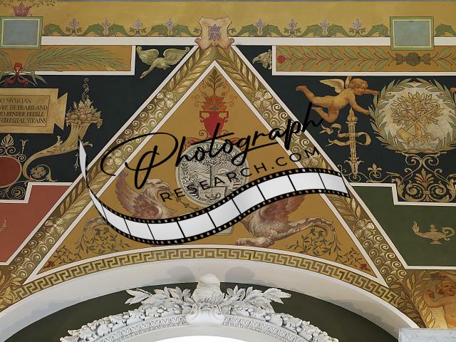 Title: [Second Floor Corridor. Printers' marks Columns. View of mural between the printers' marks of The Riverside Press and The Century Co. in North Corridor. Library of Congress Thomas Jefferson Building, Washington, D.C.]