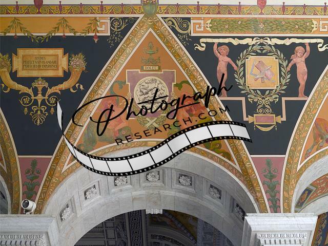 Title: [Second Floor Corridor. Printers' marks Columns. Printers' marks of Paul and Anthony Meietos and Aldus Manutius in East Corridor. Library of Congress Thomas Jefferson Building, Washington, D.C.]