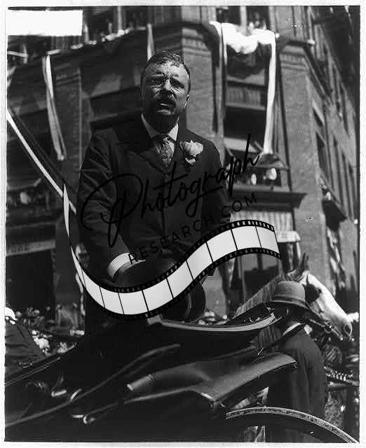 President Theodore Roosevelt speaking,public appearances,rear,carriage,c1907