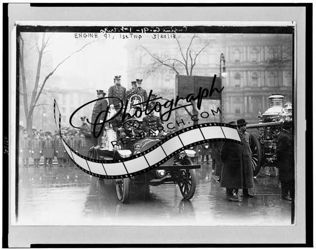 Engine 91,1st trip,Firemen with fire engine,New York City,NYC,March 20,1913