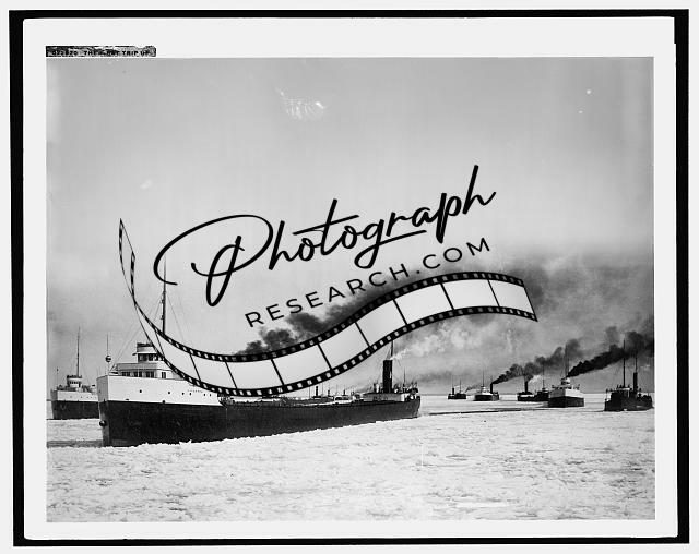 First trip,DR Hanna,freighter,cargo ships,ice,Detroit Publishing Company,1906