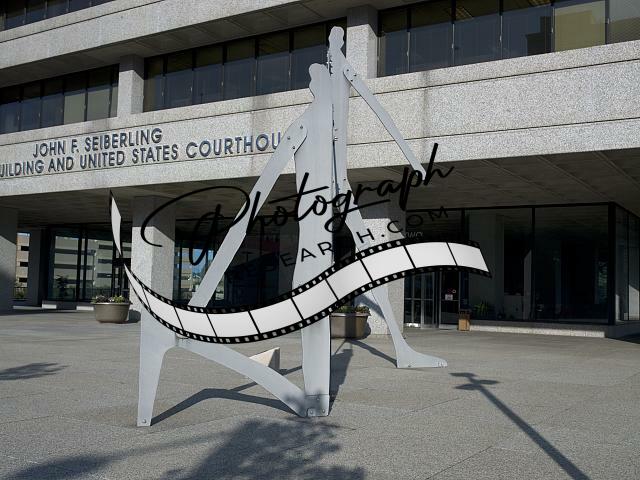 Title: Outdoor sculpture at the Seiberling Federal Building, Akron, Ohio