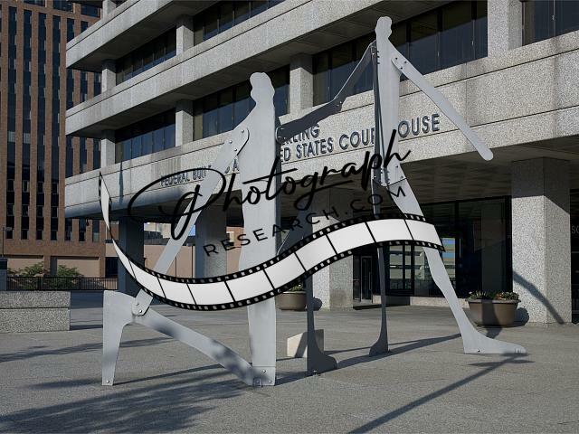 Title: Outdoor sculpture at the Seiberling Federal Building, Akron, Ohio