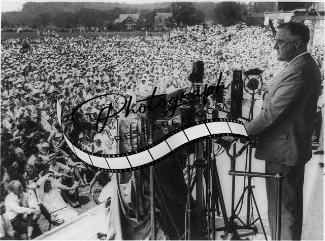 President Franklin Delano Roosevelt,making speech,crowd outside,spectators,1934