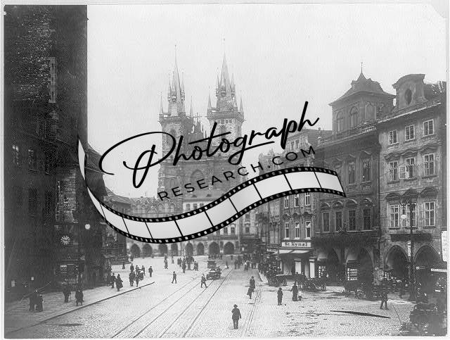 Old Town Square w/ Tyn Ch.,Prague,Czeckoslovakia,c1920,Street Scene,People