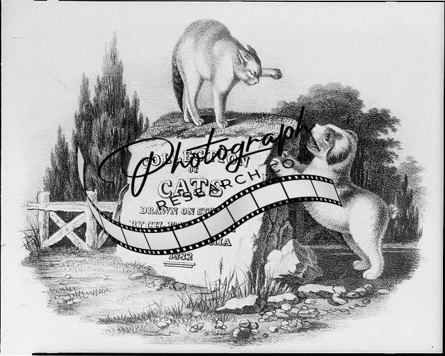 Collection of cats,By Ch. Fenderich,Philadelphia,1832,dog,cat,fence