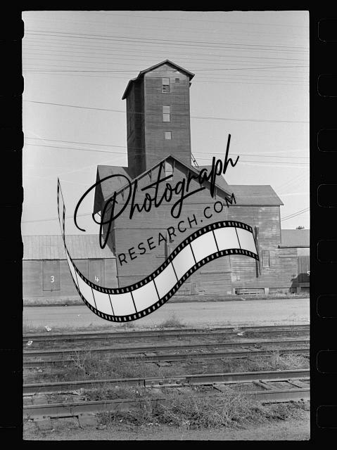 Leaning grain elevator,Grand Island,Nebraska,NE,October 1938,John Vachon,FSA