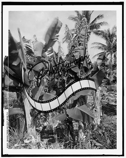 Banana trees,fruit,plants,leaves,Miami,Florida,Detroit Publishing Company,c1910