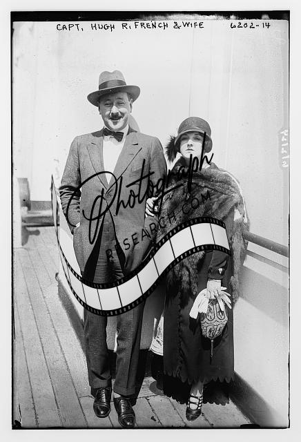 Captain Hugh R. French,wife,couples,fur coats,spouses,hats,decks,ships,boat,1924