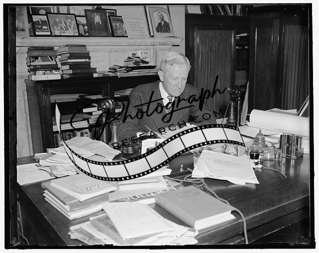 Texas senator,Morris Sheppard,office,desk,paperwork,telephone,Washington DC,1937