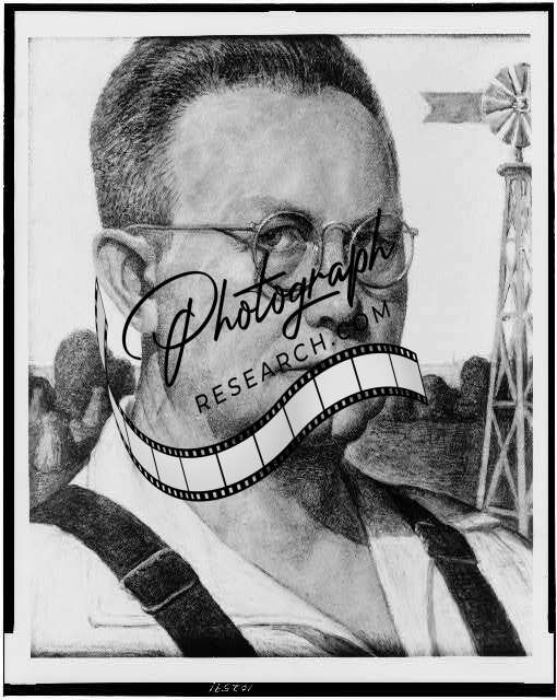 Grant Wood,American painter,rural Midwest,Gothic,farmers,artist,windmill,c1945