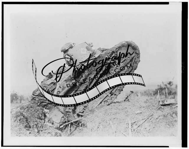 Tank ploughing trench,German line,World War I,Saint Michel,Aisne,France,1914