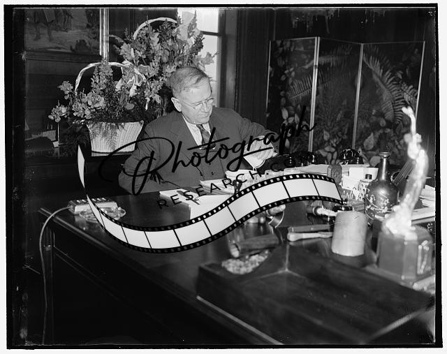 Secretary,Interior,lunch,new office,desk,eating,Harold Ickes,Washington DC,1937