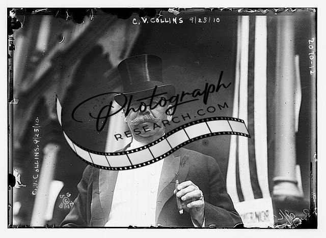 C.V. Collins,smoking cigar,wearing top hat,Bain News Service